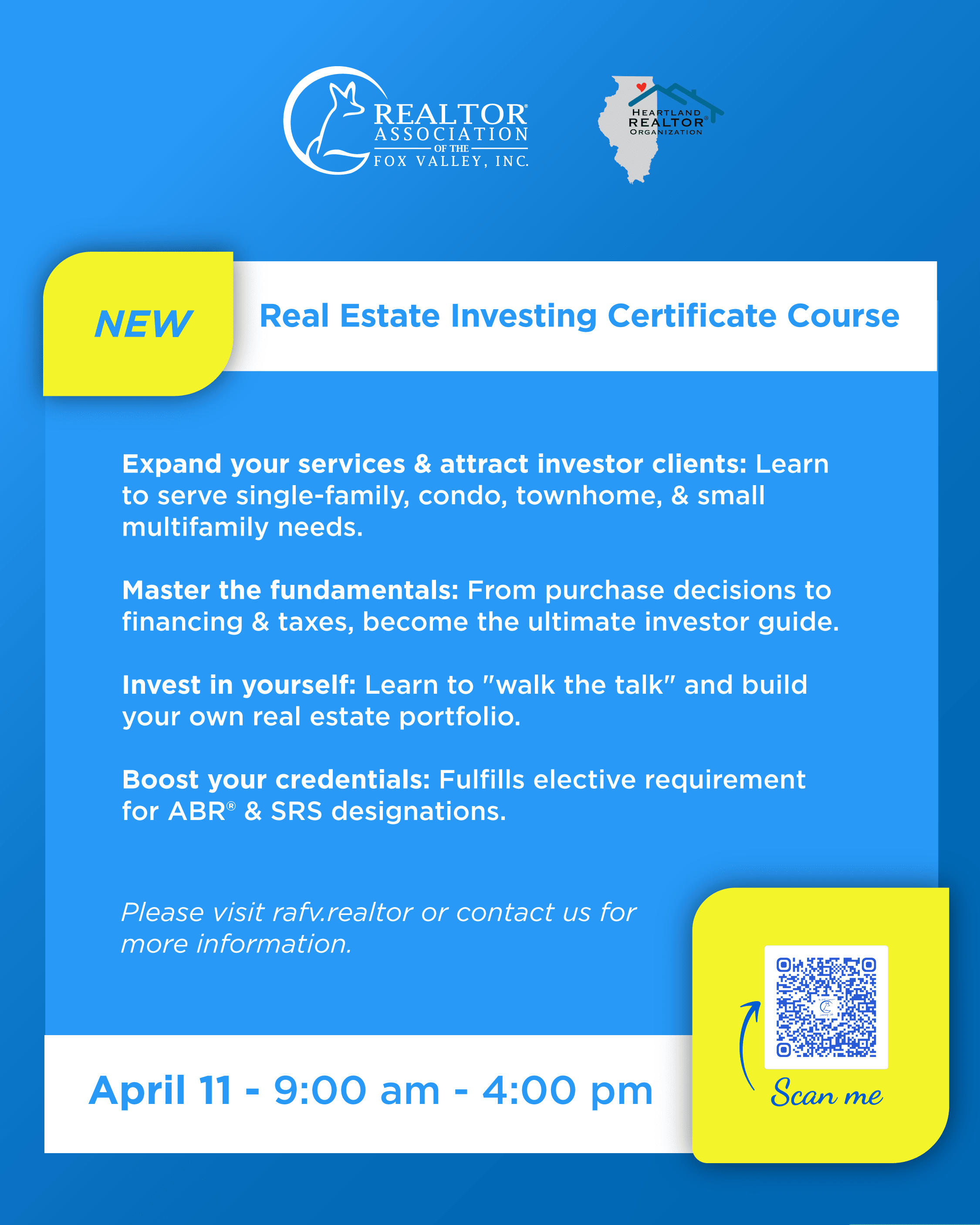 IMPORTANT NOTICE: If you have any disabilities that require special accommodations, please contact Kimberly Morgan at kim@rafv.realtor to let her know.